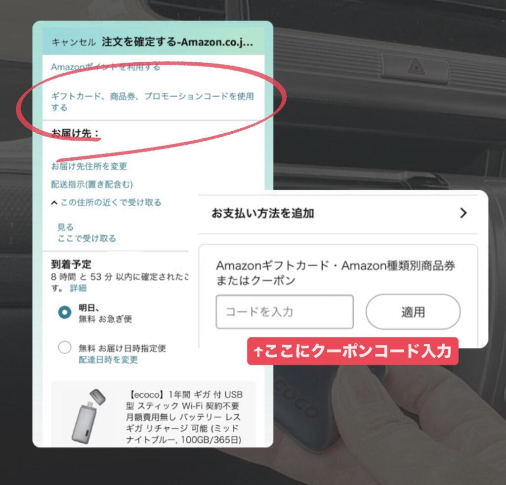 ecoco購入時にAmazonで使える非公開クーポンコードです。